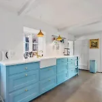Diese Unterkunft in Blåvand verfügt auch über eine Küchenzeile mit einer Kaffee-/Teemaschine, einem Kühlschrank und einem Geschirrspüler.